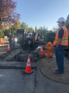 During construction, a portion of Beach Drive NE to the south of 16578 was reserved to lay out the 10” pipe that was to be pulled into the bore pit and installed under the creek.